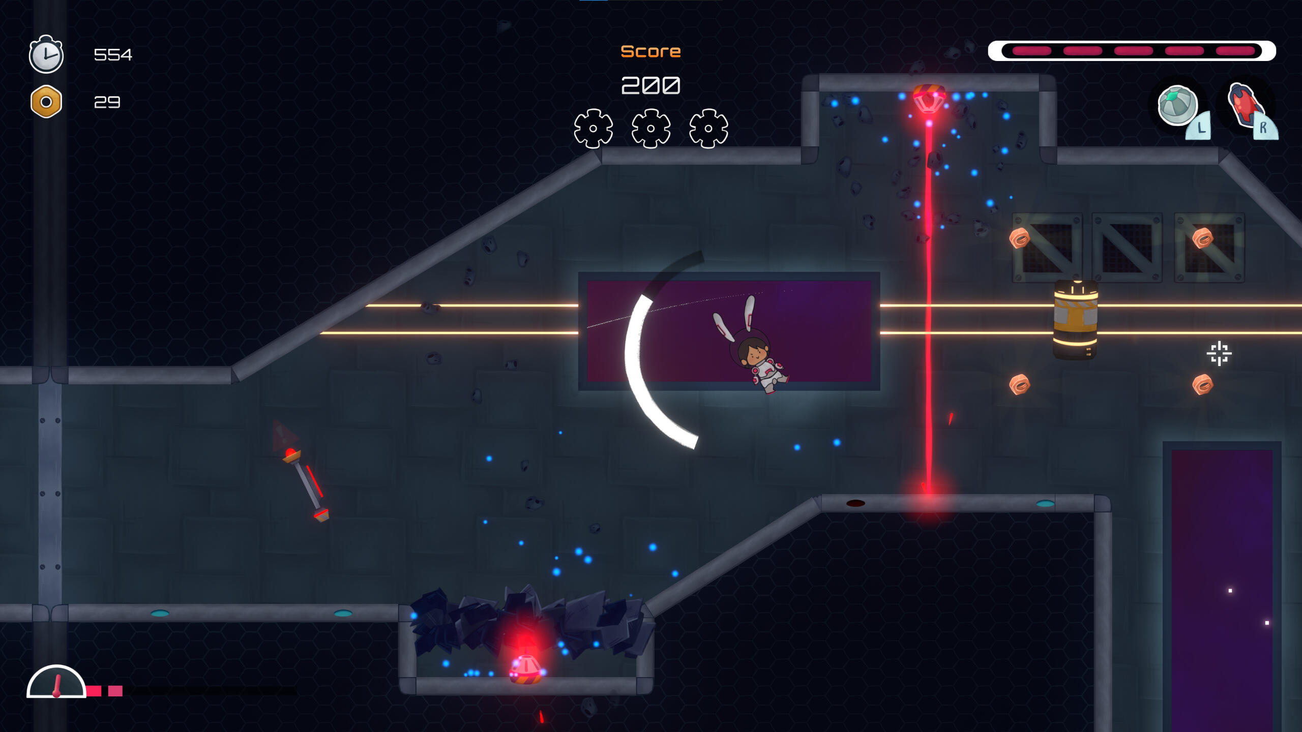 - Developed a 2D character controller for navigating in a zero-gravity environment and walking alongside surfaces using relative directional velocity and input.