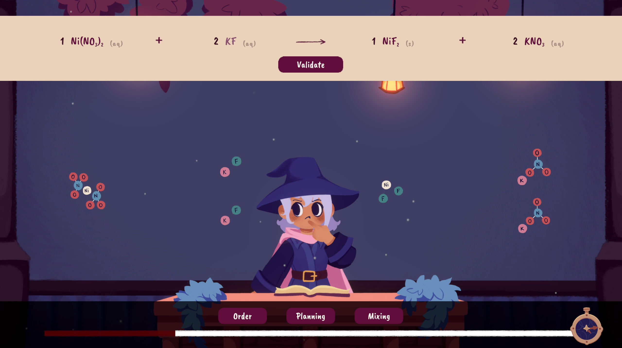 Arcana Apotheca is an educational game that helps cegep students practice stoichiometry. In the game, you run an alchemy shop and must prepare ingredients for your clients' potion-brewing endeavors.Roles: Project lead, game design, programming, UI/UX